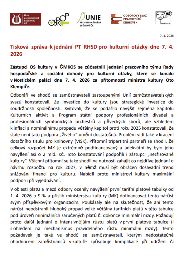 V návaznosti na nedávné jednání o rozpočtu pro oblast kultury zveřejňujeme oficiální tiskovou zprávu, která shrnuje jeho průběh i hlavní závěry.
