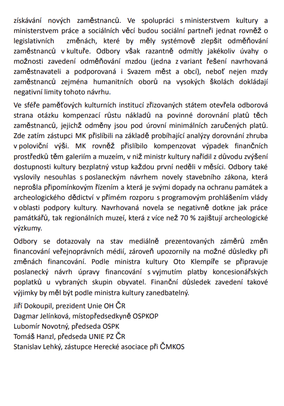 Dokument přináší společné stanovisko zástupců kulturního sektoru a reflektuje aktuální situaci i další kroky, které budou v následujícím období klíčové.